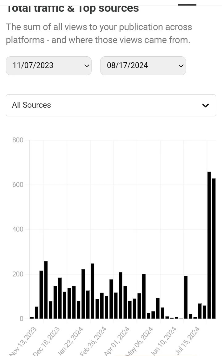 This is my total traffic since I started writing on Substack. The far right was the results of posting Non Sequitur Memes 1 and 2.